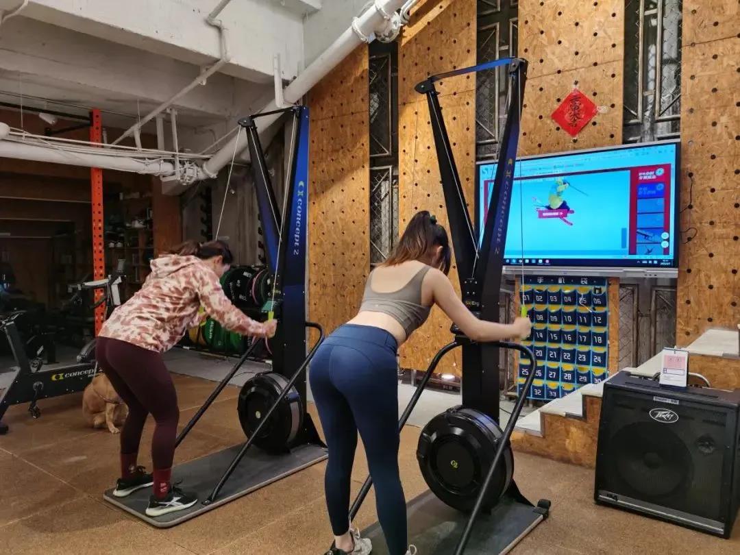 活動現場,在專業教練的指導下,市民們換上運動裝備迫不及待地體驗了一把Concept2 Ski(滑雪機)。