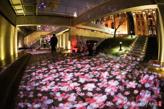 乍浦路橋“櫻花谷”呈現“影動外婆河”光影秀。海沙爾攝