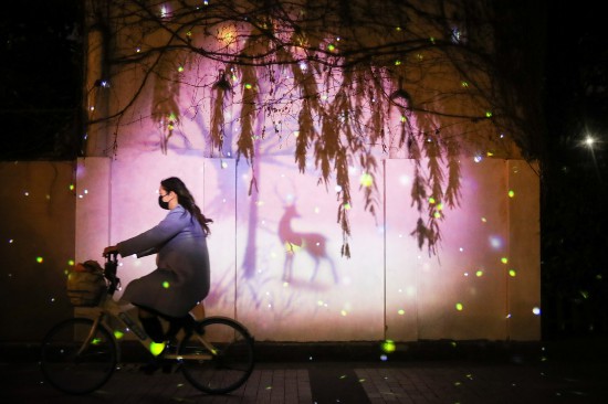 “會講故事”的燈景,讓人們重新發現蘇州河的美。在九子公園附近的“有為公社”,光影入畫,畫面中出現了孩子、鹿、鴿子等一些畫面元素,向路人講述了童年的故事……一位在附近工作的街道干部告訴記者,在蘇州河畔走了這么多次,從沒發現過“有為公社”這處建筑,看了燈景,自己被深深打動了,想白天過來看看這處建筑……