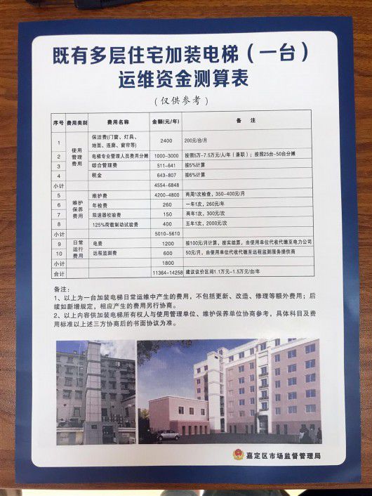 △嘉定區市場監管局給出的加裝電梯運維資金建議議價區間也是1.1萬元至1.5萬元每臺每年。