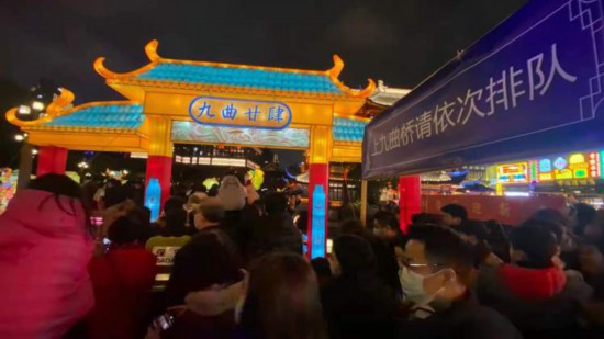 老城隍廟憑票入園賞燈,一個小時才能上九曲橋