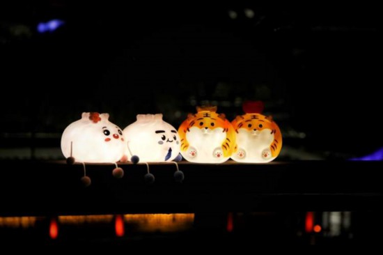 園中逛一逛,不時可以遇到手提各種燈籠,頭戴老虎燈的大人與小孩。蟹粉灌湯包、笑臉棉花糖等特色美食也常見,到處是站著吃,走著吃的人。