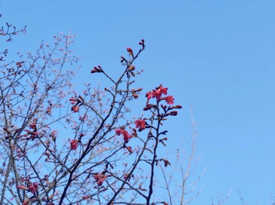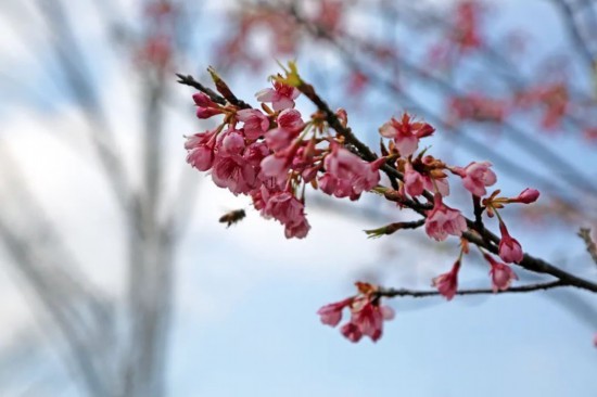 目前,臺灣鐘花櫻也進入始花期,后期初美人櫻、大漁櫻、大寒櫻等早櫻花的花芽也陸續進入開放期,預計在2月末和3月初形成一波早櫻花的盛花期。