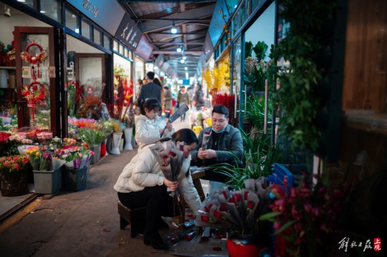 花市中隨處可見忙著打包玫瑰的店家,甚至還有一家三口齊上陣的場面。忙歸忙,今年的收益卻因為高價玫瑰而受到不小的打擊。