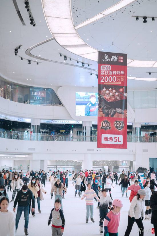 2022年2月13日,記者來到位于閔行區萬象城4樓的一家室內標準滑冰場,發現不僅冰面上人如潮涌,更大批的市民則在冰場外排隊等待入場。