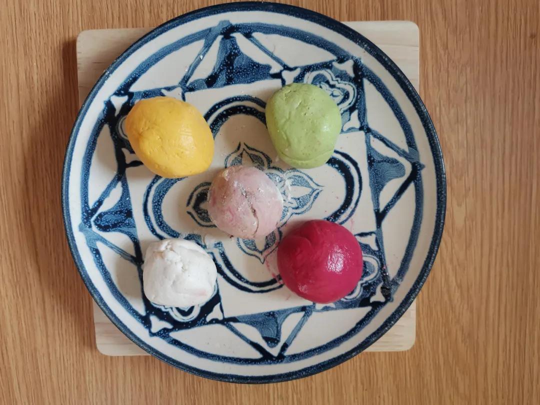 甜菜根,菠菜,南瓜三種食材,配合糯米粉,豆沙,黑芝麻餡,不同顏色的汁水揉在糯米粉里,變成不同顏色的小面團。色彩繽紛的彩色湯圓不僅顏值超高,而且吃得健康。