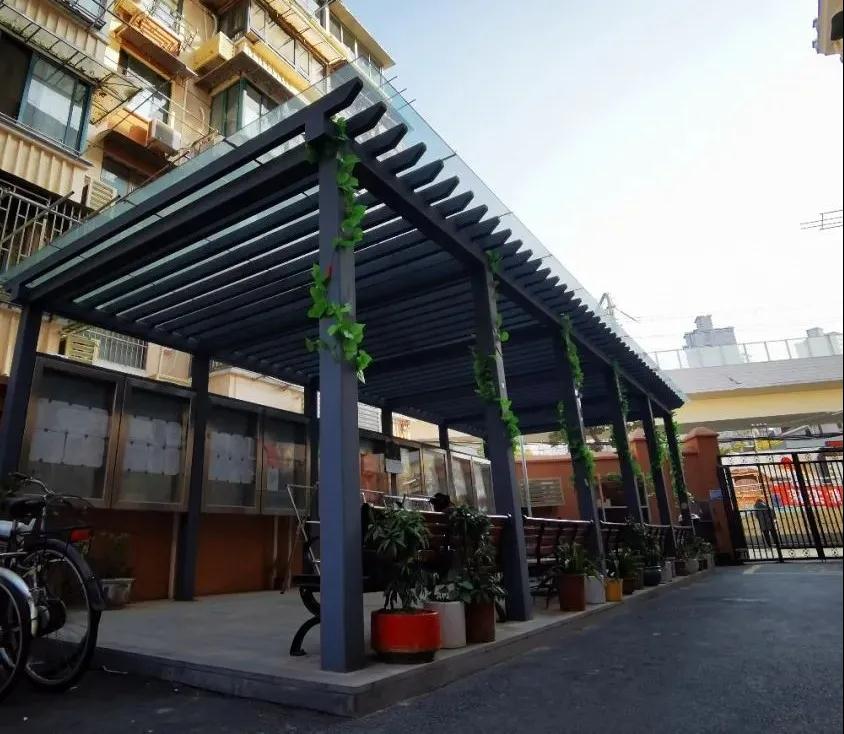 “原先,我們這個休憩點的設計非常時尚、現代,但很多居民希望建成別具古韻的涼亭,所以我們就改了設計方案!本用駞^工作人員介紹。如今,只要天氣晴朗,不少老年居民就會歡聚于此,談笑風生。