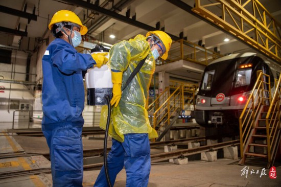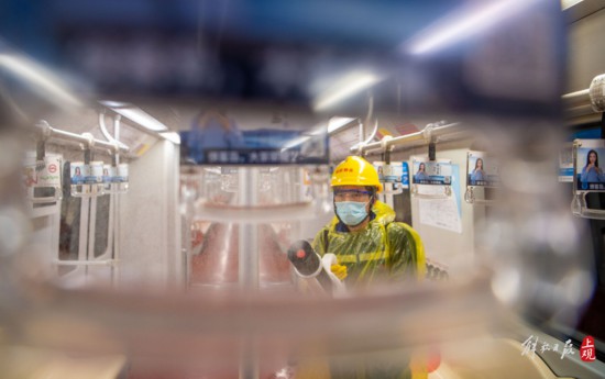原標題:看不見的“防疫一線”,他們深夜背著20公斤藥水,消毒150余節地鐵車廂