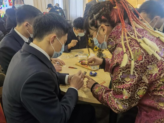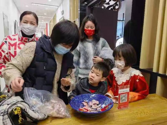 在手工活動區域,一批年輕人正在香囊制作技藝傳承人陳杏芝的指導下學習香囊的制作,為自己的香囊挑選不同的填充香料,并一針一線地完成縫合。學員中,有一些是留滬過年的建設者,希望通過親手縫制香囊為家人祈福,也有一些是特意帶孩子來體驗的家長,希望能從小培養孩子對傳統文化的興趣。