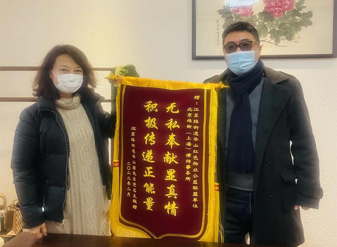 “受居民們的委托,感謝您堅持‘零距離’解答居民身邊的法律難題,能夠讓經濟困難群體得到及時的法律援助”……一面由江蘇路街道華山居民區黨總支送來的錦旗,代表了居民滿滿的心意,而代表法律援助中心接收錦旗的法援律師朱鷹則表示,肩頭的責任沉甸甸的,他有信心做好。