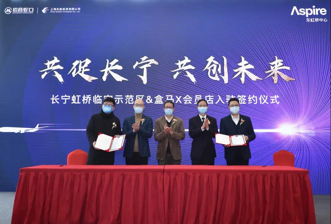 2月17日,“潮由新生·引力無界”東虹橋中心主力品牌簽約儀式舉行,長寧首家大型會員超市盒馬X會員店分別與長寧區政府、東虹橋中心簽署合作協議,這也是自LAS藍時潛水、景·憶川、醉輝皇等入駐之后的又一主力品牌。
