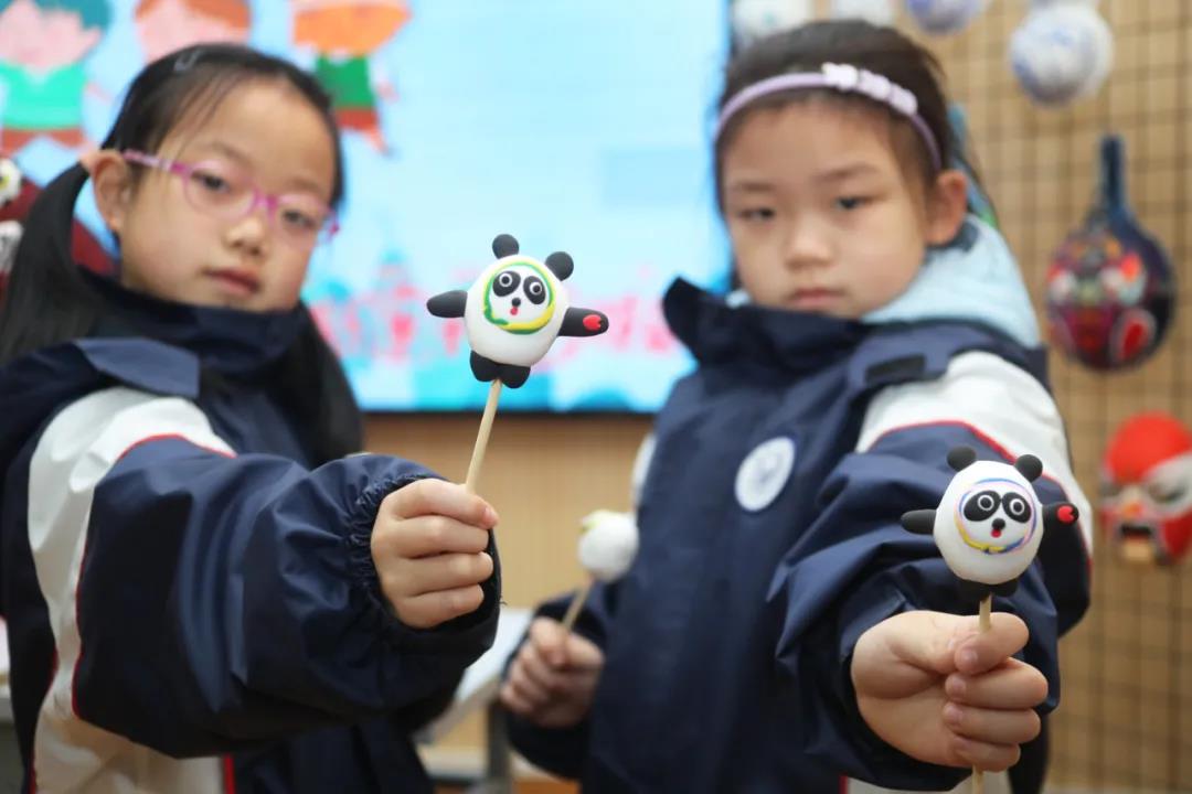 圓滾滾的身體,亮晶晶的眼睛,倒八字的黑眼圈,還有這標志性的招手動作,幾袋彩色的輕黏土到了老師手里,三下五除二就做出了一個冰墩墩。孩子們的目光瞬間就被這位奧運“頂流”吸引過來。