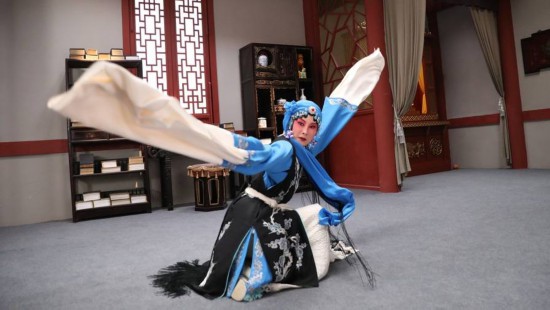 張火丁在京劇電影《鎖麟囊》中展現精彩的水袖。劉海發攝