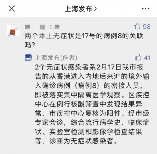 2月21日,上海就昨日新增兩例無癥狀感染者的相關問題進行回應: