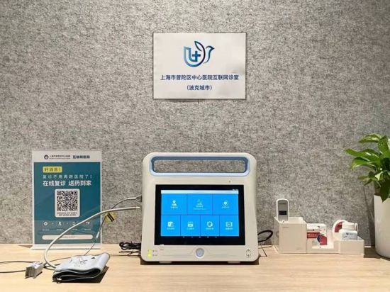 去年3月,在普陀區中心醫院和天地軟件園的黨建共建協議之下,波克科技還有了兩間互聯網診室。記者看到,溫馨獨立的就診空間很好地保障了就診者的隱私。診室配備了健康一體機,可以方便就診人員自測血壓、心率、體溫等基本體征數據。