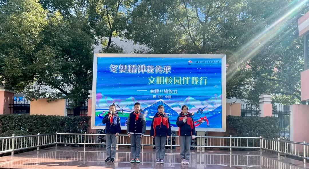 2月21日早晨,五角場小學舉行了“冬奧精神我傳承”主題升旗儀式,學校黨支部書記做了國旗下講話,為學生們再次回顧本屆冬奧盛況,告訴孩子們,每一塊獎牌都凝結著中國選手的汗水,并用四句話詮釋冬奧傳遞給大家的內在力量:有拼搏更精彩;能堅持有收獲;會合作能成功;懂規則向未來。