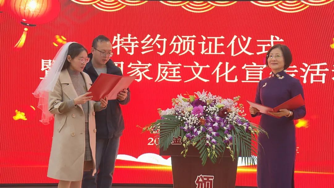 此外,在這樣一個特殊的日子里,婚登中心還為領證的新人們舉辦了一場特別的家庭文化宣傳活動。