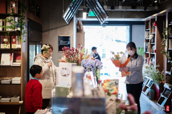 同時,店內的書架上也可以看到擺放著大量園藝方面的書籍和經典的鮮花題材的繪畫圖冊,和店內的鮮花相得益彰。鮮花帶動了小店的生意,這里也成了周邊居民來買花、購書的溫馨去處。