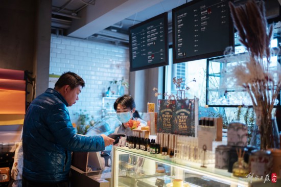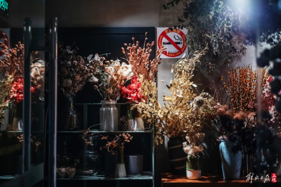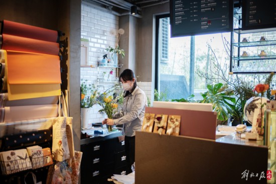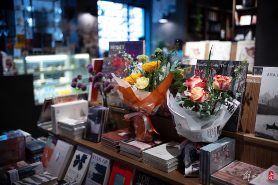 據店員介紹,這間書店的老板本身就是愛花之人,原本想用鮮花點綴書店,待到書店開幕后,索性將空間利用起來,專辟一個柜臺販售鮮花,店里招募的員工不僅會做咖啡,也要掌握花藝的技能。