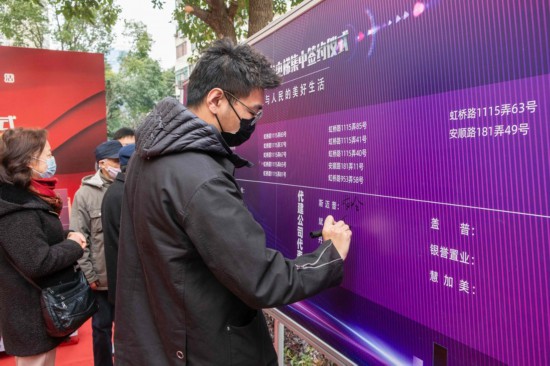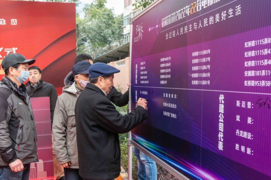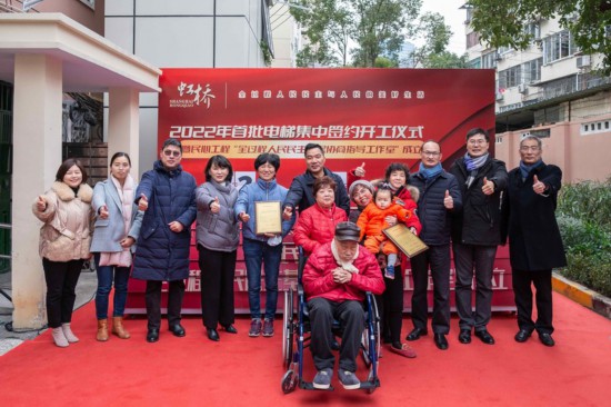 “今天是個巧日子,我們想討個口彩,沾沾喜氣!2月22日,22臺新加裝電梯在長寧區虹橋街道集中簽約,另有10臺電梯于當日竣工。居民們一早都自發來到簽約現場,見證家門口這“歷史性”的一刻。