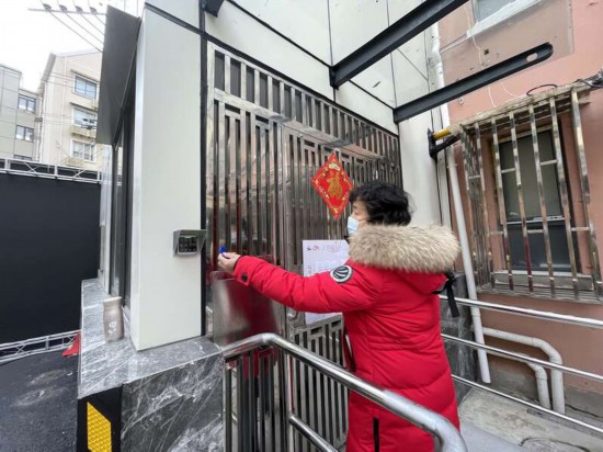 家住安順路361弄4號樓4層的許菊花阿姨今年64歲,和90多歲高齡母親同住的她不久前生了一場大病。就在她病愈后不久,樓里加裝的電梯竣工,頓時解決了她的一大塊“心病”——陪母親出門再也不用求助他人。集中簽約當天,雖然自家電梯已經開始使用,但許阿姨還是專門穿上了紅色的羽絨服,到現場和鄰居們一同感受加梯后喜氣洋洋的心情。