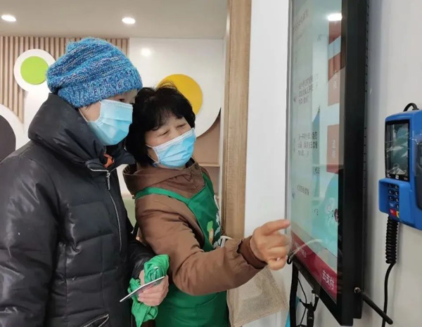 上午10點,67歲的顧華云來到離家不遠的愛建居民區美好生活服務站,配合工作人員為老年助餐服務做準備!胺⻊照驹O置了自助點餐屏,可預定第二天的午餐,但許多老人用不來,所以我就過來幫忙指導!