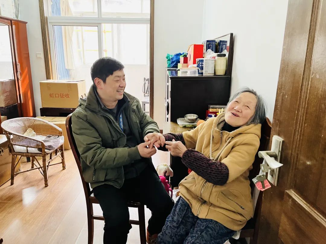 1月24日,邵存娣在殷勤勝和陳馳驊的陪伴下搬入新居。當天,兩位經辦人為老人落實了社區食堂送餐服務,還聯系小區物業疏通了下水道,和小區所在的居委會也打了招呼。邵存娣被他們的貼心和細致深深感動,稱他們“有金子般的心”。