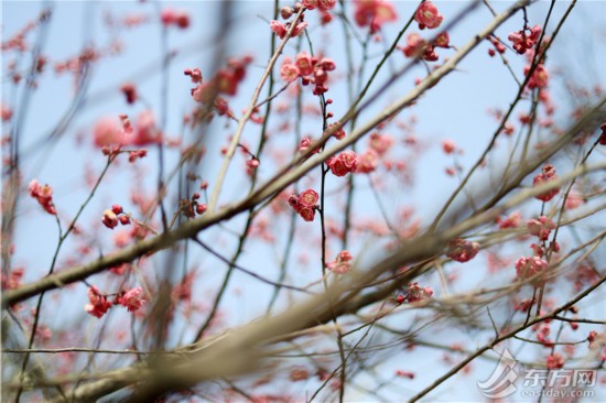 原標題:只把春來報!上海街頭紅梅綻放[多圖]