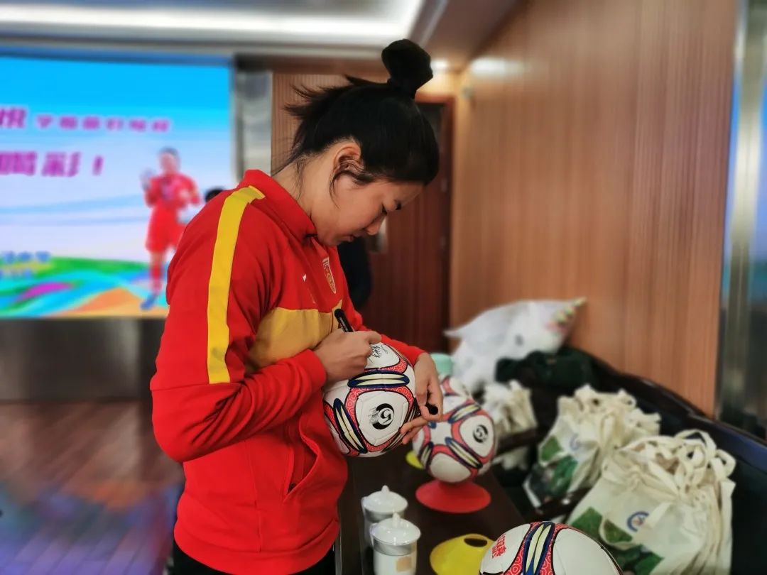 簡短的座談后,李佳悅把更多的時間留給了母校的學弟學妹們,她來到學校足球場上觀看小隊員們的訓練,并進行技術輔導。
