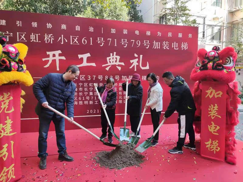 虹橋小區的加梯開工儀式。虹橋街道供圖