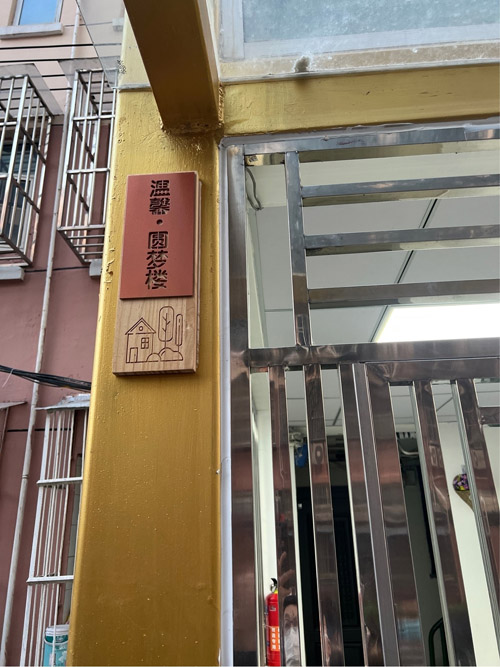 加梯后的門口,貼上了“溫馨·圓夢樓”的門牌。虹橋街道供圖