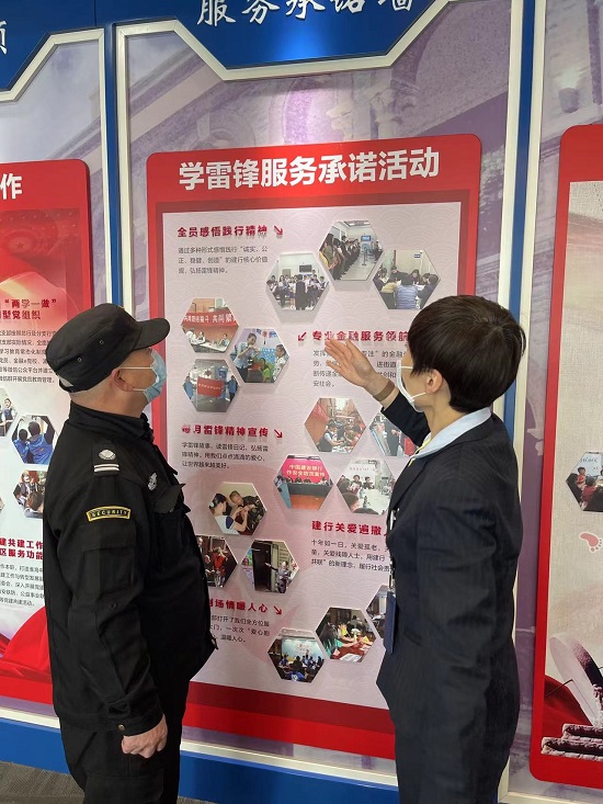 建行淮海中路支行又名“雷鋒支行”,網點充分發揮“勞動者港灣”公眾教育和黨建宣傳功能,將“紅色背景”引入勞動者港灣,設立“雷鋒精神教育專區”,讓進入港灣的勞動者在休憩之余,還可以收獲黨性教育和心靈洗禮。網點還會不定期舉辦各類紅色講座,向社會大眾宣傳雷鋒精神,傳承雷鋒文化。