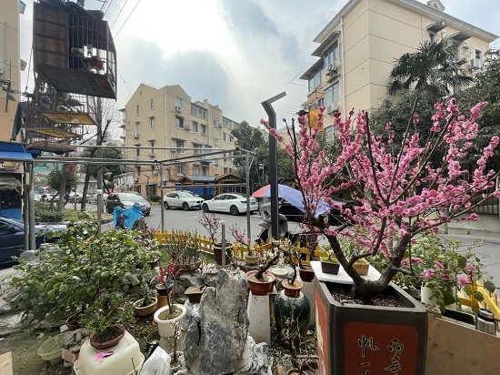 玉田新村87號樓前的玉三梅園便是這種做法的典型代表。87號一樓居民貝金開喜歡琢磨養花,一有空就瀏覽各類養花的訂閱號,家里培育了不少珍稀盆景,曾參加曲陽文化藝術節展示,是一位小區“綠化達人”。