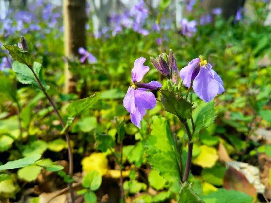 樹蔭下的“紫色精靈”是何方神圣?共青森林公園二月蘭悄然盛放