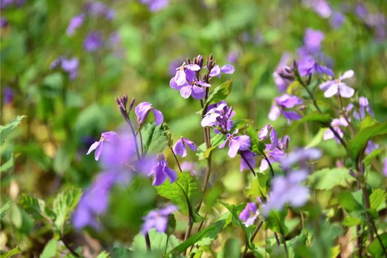 二月蘭,顧名思義通常在2月開花,盛花期在3月份。它是一種常見的野花,花朵不大,屬于十字花科的一種,最高可達50厘米。作為優良的地被植物,二月蘭不需要過多養護,可與其他植物混種,對水土的條件要求也不高,一次播種后可年年自成群落景觀。