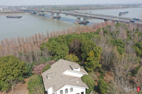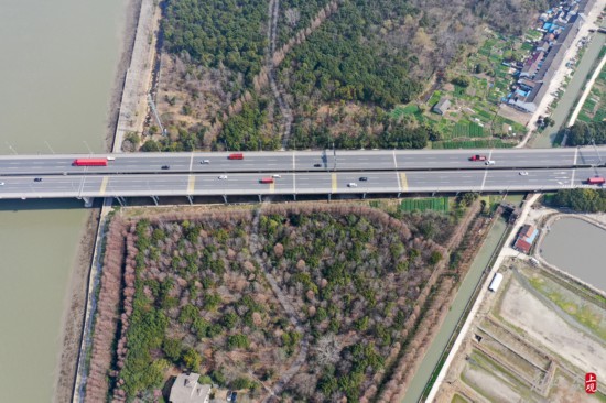 俯瞰上海最大的獐子家園——松江葉榭獐極小種群恢復與野放基地,水清林密。