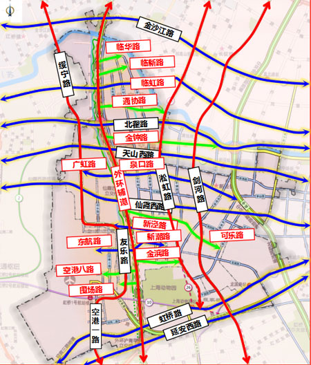 現狀6條:金沙江路、北翟路、天山西路、仙霞西路、虹橋路、延安西路