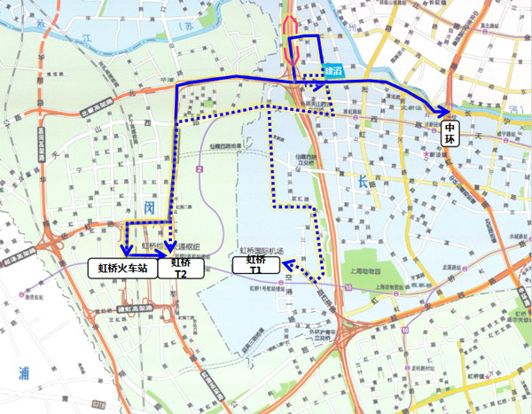 金沙江路、北翟路、天山西路、仙霞西路、虹橋路、延安西路