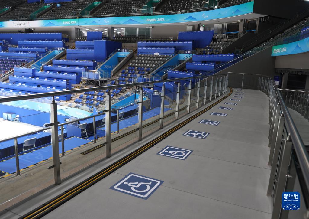 國家體育館看臺席的無障礙坐席(3月1日攝)。新華社發(胡星宇攝)