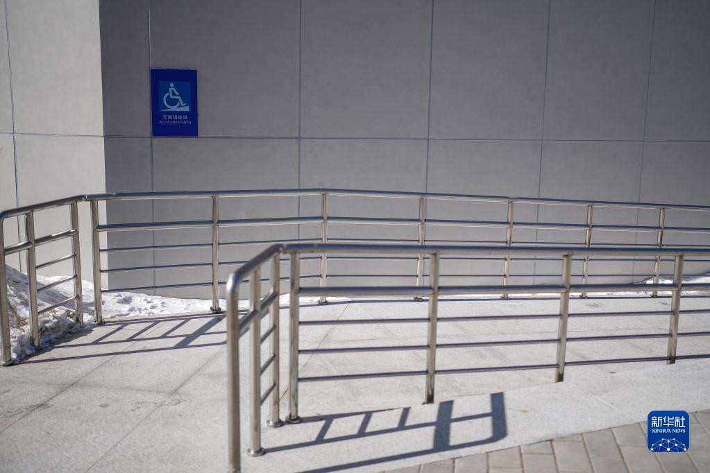 這是2月25日在張家口賽區國家冬季兩項中心場館拍攝的無障礙坡道。新華社記者彭子洋攝