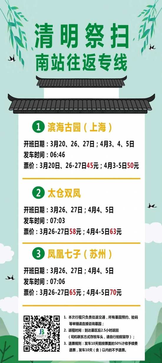 2、從3月20日至4月5日期間,每逢雙休日及清明節4月3日至4月5日,推出從交運巴士長途南站直達墓區的“清明祭掃專線”服務項目。