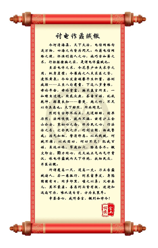 上海市公安局金山分局發布《討電詐蟊賊檄》