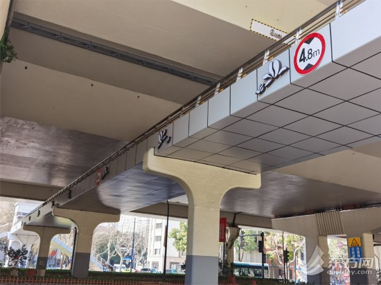 值得一提的是,此次人行天橋也同步進行了改造,“顏值”大大提升。在外觀設計方面,考慮到天橋西側電梯正對著重慶南路南昌路口的玉蘭園,便選擇了“玉蘭藏春”為主題,在主橋兩側及垂直綠化中安裝的玉蘭花燈箱,白天可做天橋裝飾,夜間則做橋梁景觀特色亮化。