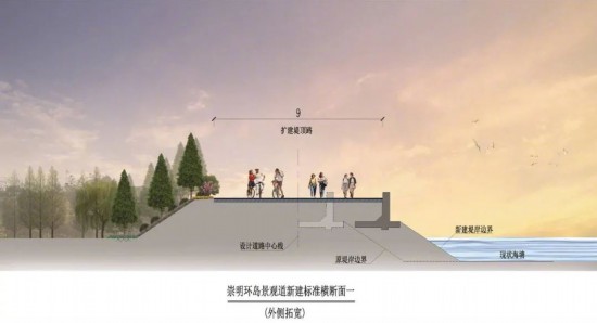 崇明區新聞辦表示,環島景觀道二期工程(西起城橋鎮,東至護鱘路)長約56公里,于去年10月正式開工,目前正在有序推進,預計今年年底竣工。二期是集防汛、生態和景觀功能為一體的復合通道。它在潮位防汛達標的基礎上,將現有5米的堤頂道路拓寬改造為9米的濱海慢行道路。未來還將結合地方風貌特色,沿江布點建設濕地公園、濱江公園等適合市民休憩、交流、活動的公共空間。詳見↓