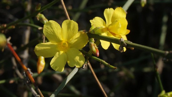 迎春花因其花開在立春左右,所以得名“迎春”。迎春花的花期較長,整個春季都能看到它的身影。它們的花為明黃色,著生于枝條上,婀娜多姿,十分美麗。