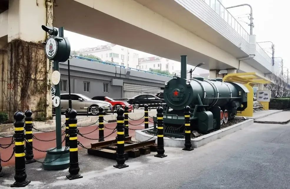 鐵道盡頭的指示燈、銹跡斑斑的鐵軌、一比一復刻的火車車頭出現在范北鐵路公房小區“護航號”通往三十七民眾夜校的路上,全新打造的“護航站”充分還原老上海西站的站臺景象,而不遠處軌交3、4號線此起彼伏的隆隆轟鳴聲,則成為站臺最生動的配樂。