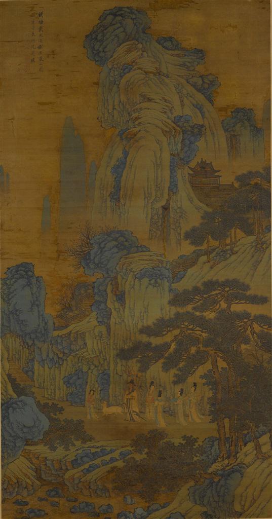 沈周《臨戴文進謝安東山圖軸》為翁萬戈于2019年捐贈,該圖是沈周54歲時所作,臨摹的是比他略早的浙派著名畫家戴進的《謝安東山圖》,描繪東晉著名宰相謝安隱居東山時,攜妓出游,縱情山水的情景。沈周的山水畫,師法元代黃公望與吳鎮,遠溯五代董源、巨然,而戴進宗法的是南宋馬遠、夏圭,以風格而論,一為南方山水與水墨畫的傳統,一為北方山水與宮廷著色畫的傳統。沈周畫多仿元人,此畫風格在他的作品中既是一件孤品,也是一件奇品,堪稱絕無僅有。