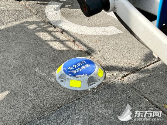 東方網記者王泳婷3月10日報道:近日,細心的市民發現,靠近延安西路仙霞路路口的共享單車停放點,地面上安裝了一個個醒目的圓形設備,上面還標注著“安全出行規范停車”的提示語。這個設備叫“藍牙道釘”,是長寧區天山路街道為治理轄區共享單車停放亂象,自今年1月起試點使用的智能設備。