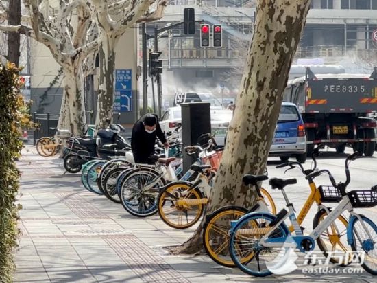 試行兩個多月以來,共享單車停放現象是否有改善?家住延安西路與仙霞路交叉口聯建小區的居民黃阿姨很有發言權,“周邊寫字樓多,很多上班族急匆匆停好自行車就走了,有時也不管是不是停在規范區域內,以前甚至有自行車堵在仙霞路上的小區進口處,搞得我們居民要出門還得先搬車!秉S阿姨欣慰地告訴東方網記者,今年街道來裝好智能設備,明顯覺得小區門口的共享單車亂停放問題逐步有了改善,花壇、街邊綠化、盲道等原先亂停車的“重災區”也再無類似情況發生。