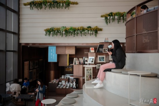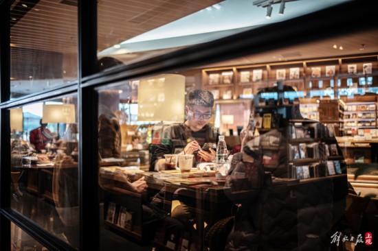 工作日的書店很清靜,大家各自獨坐一隅,專注于手頭的事情,互不干擾。店長向記者介紹,在未經允許的情況下,店員會婉拒客人在店內的攝影要求,“不做網紅打卡店”成為店家維護店內環境與調性的選擇。
